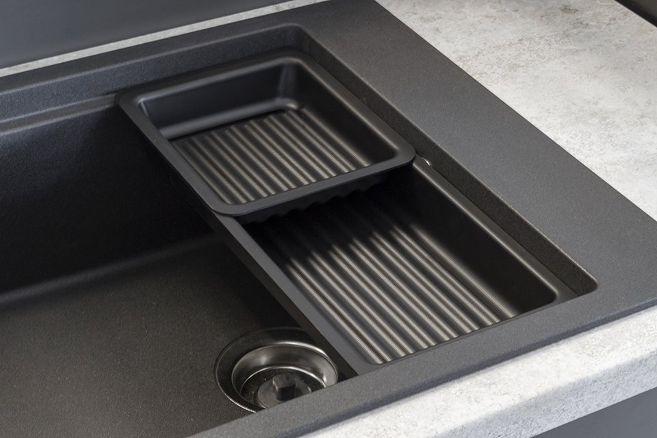 Skirta naudoti kriauklėje – vanduo tiesiog nubėga, nelieka balų ar dėmių ant stalviršio.